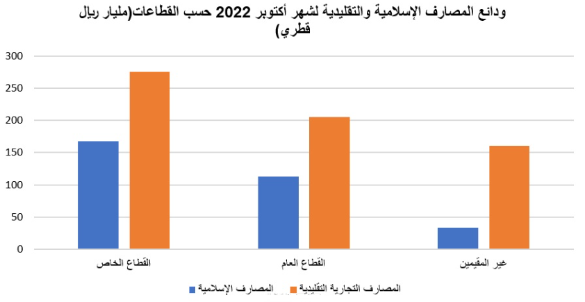 وخلص التقرير إلى أن الودائع لدى البنوك الإسلامية قد تراجع في شهر أكتوبر/ تشرين الأول السابق 2022 بنسبة بلغت 01.1 في المائة على أساس شهري لتبلغ 314 مليار ريال قطري، وقاد هذا الإنخفاض الشهري التراجع في ودائع غير المقيمين بنسبة 11.4 في المائة.