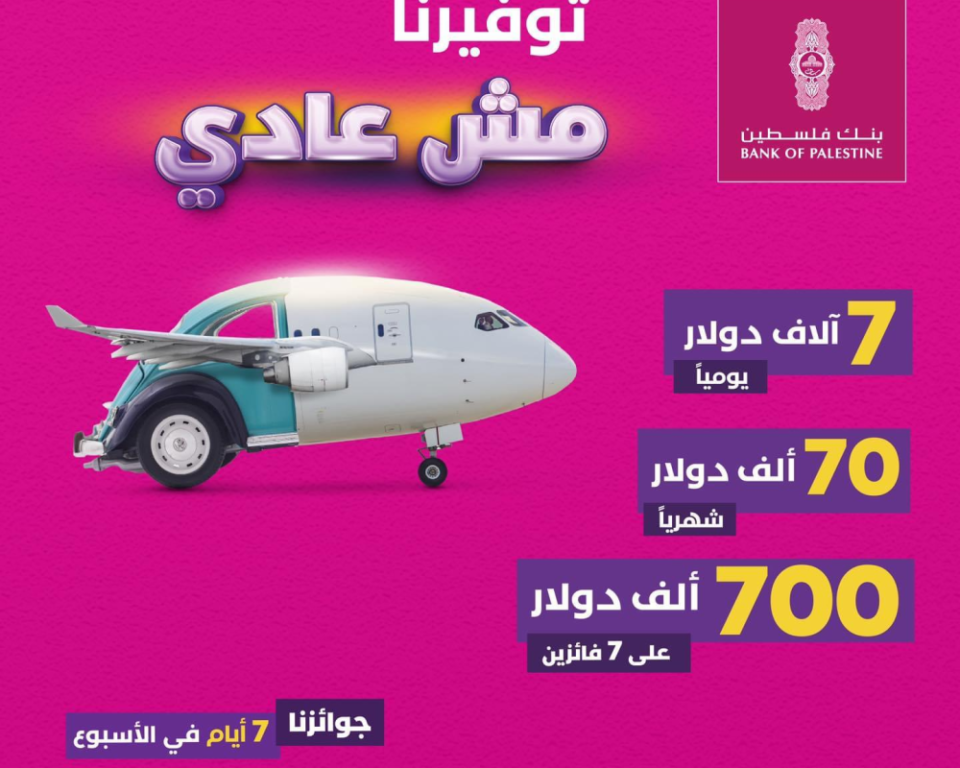 وستمنح الحملة الجديدة المدّخرين لدى بنك فلسطين فرصة الدخول على السحب يوميا على جائزة بقيمة 7000 دولار، وشهريا على جائزة بقيمة 70,000 دولار، ونهاية يناير من العام 2024 جائزة كبرى بمبلغ 700 ألف دولار مقسمة على 7 فائزين، علما أن السحب على الجوائز ستكون خلال أيام الأسبوع، بما يشمل أيام الجمعة والسبت.