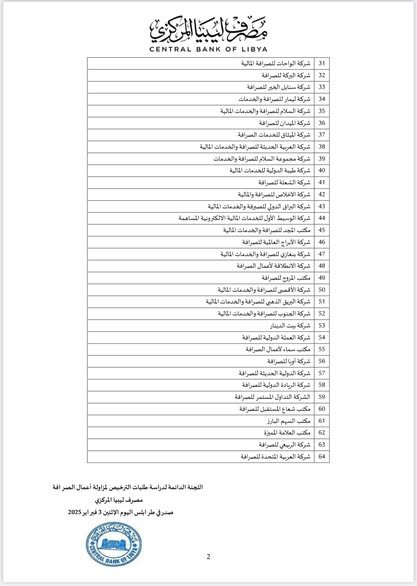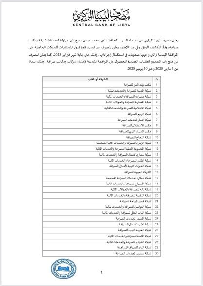 ليبيا المركزي يُرخّص 64 شركة صرافة