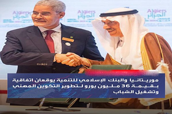 وقعت موريتانيا ومجموعة البنك الإسلامي للتنمية، أمس الأربعاء الموافق لـ 21 مايو 2025، إتفاقية لتمويل نواكشوط بـقيمة 36 مليون يورو من أجل تحسين التدريب المهني وتشغيل الشباب.