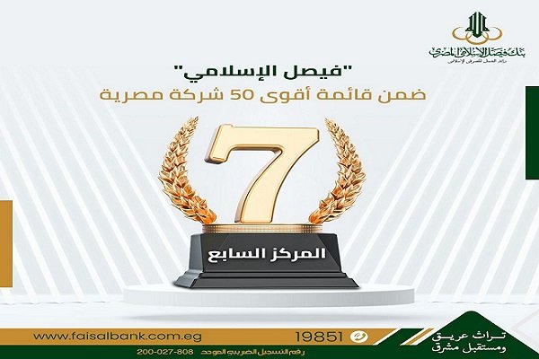 حقق بنك فيصل الإسلامي المصري تقدماً في قائمة أقوى 50 شركة مصرية في عام 2025م وفقًا لتصنيف مؤسسة فوربس الشرق الأوسط “Forbes Middle East”، ليحتل المركز السابع في هذه القائمة صاعداً من المركز الثامن عام 2024م.