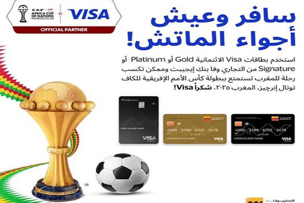 أعلن التجاري وفا بنك إيجيبت عن إطلاق عرض إستثنائي لعملائه، يتيح لهم فرصة ال فوز برحلة شاملة إلى المغرب لحضور مباريات كأس الأمم الإفريقية 2025 وتشجيع المنتخب المصري، وذلك عند إستخدام بطاقات Visa الائتمانية من البنك خلال فترة العرض الممتدة من 01 حتى 30 سبتمبر 2025.