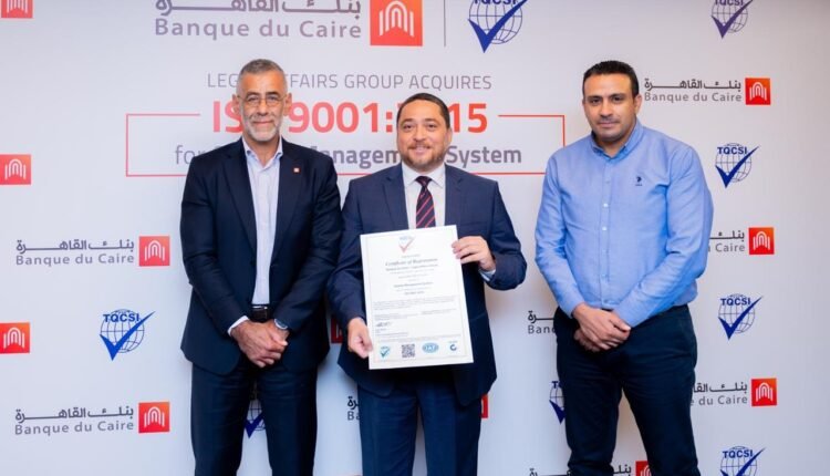أعلن بنك القاهرة حصول مجموعة الشؤون القانونية بالبنك على شهادة الأيزو ISO 9001:2015 في نظام إدارة الجودة، والممنوحة من شركة TQCSI International Pty Ltd، إحدى الجهات العالمية المعتمدة في منح شهادات الجودة.