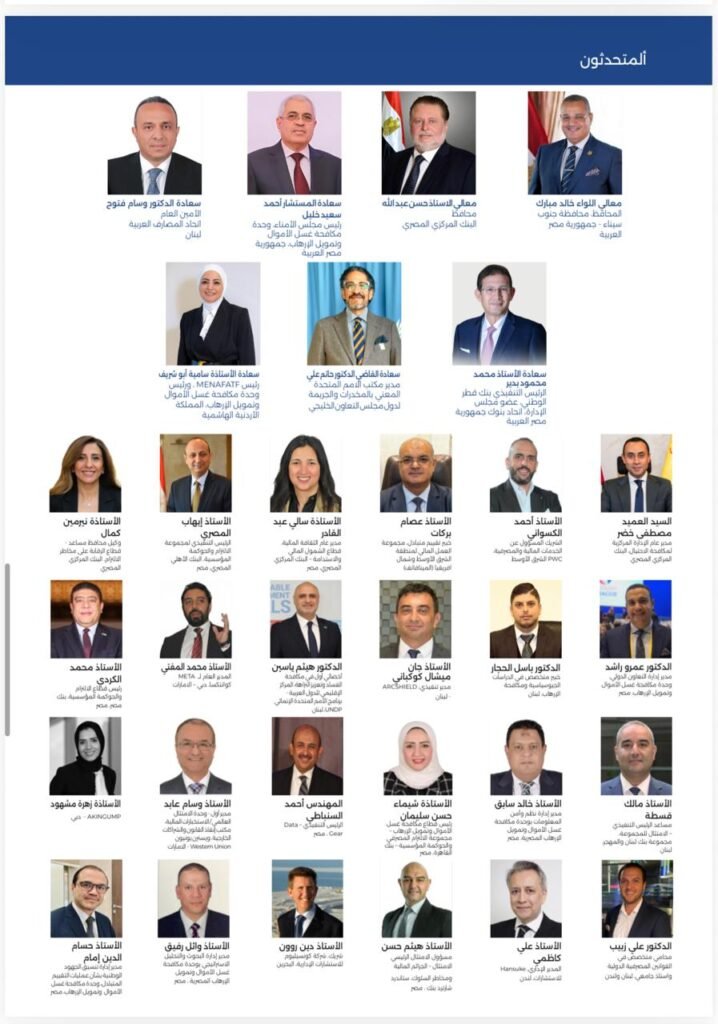 - المنظمون: ينظم الملتقى اتحاد المصارف العربية بالتعاون مع وحدة مكافحة غسل الأموال وتمويل الإرهاب المصرية واتحاد بنوك مصر.