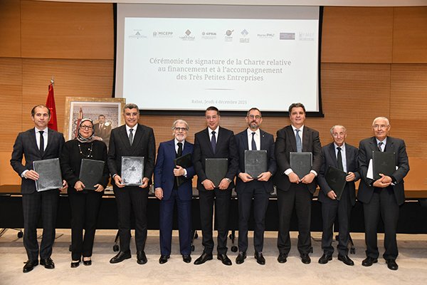 قّعت تسع مؤسسات عمومية وخاصة بالمغرب، من بينها وزارة الاقتصاد والمالية، ووزارة الاستثمار والتقائية وتقييم السوياسات العمومية، وبنك المغرب المركزي، وتمويلكم، والمغرب للمقاولات الصغرى والمتوسطة (Maroc PME)، والمجموعة المهنية لبنوك المغرب (GPBM)، والفيدرالية الوطنية للنقل عبر الطرق (FNAM)، والإتحاد العام لمقاولات المغرب (CGEM)، والمؤسسة المغربية للتربية المالية، على ميثاق جديد مخصص لتمويل ومواكبة المقاولات الصغيرة جداً (TPE)، وفق بلاغ صحفي مشترك.