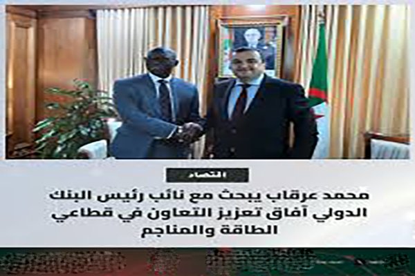 وجرى اللقاء بحضور كاتبة الدولة المكلفة بالمناجم كريمة بكير طافر وإطارات من الوزارة، ووفد مرافق للمسؤول بالبنك الدولي. وشكّل الاجتماع فرصة لمناقشة آفاق تطوير الشراكة بين الجانبين على الصعيدين التقني والتمويلي، خصوصاً ما تعلق بالمشاريع الكبرى الهادفة لتطوير النفط والغاز والبتروكيمياء، ودعم البرامج الوطنية لخفض الانبعاثات وتقليل البصمة الكربونية بالتعاون مع سوناطراك.