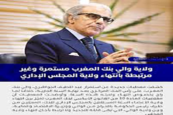 وأوضحت المعطيات أن مقتضيات المادة /30/ من القانون الأساسي لبنك المغرب تميّز بين انتهاء ولاية الأعضاء الستة المستقلين بالمجلس الإداري للبنك، المعيّنين من طرف رئيس الحكومة باقتراح من الوالي ووزيرة الاقتصاد والمالية، وبين ولاية المحافظ، التي تبقى قابلة للتجديد ولا ترتبط بآجال انتهاء ولاية المجلس.
