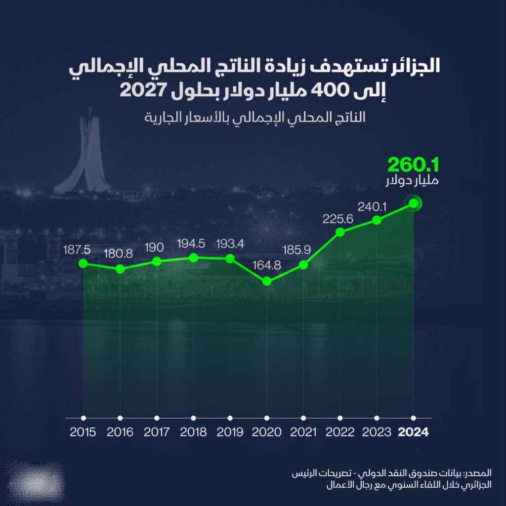 بنوك عربية: وفق تقديرات قانون المالية للعام المالي الجاري 2026، سيرتفع الناتج المحلي الخام للجزائر بنسبة تفوق 15% خلال الأعوام الثلاثة المقبلة.