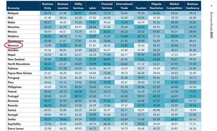 ووفق تقرير «الجاهزية لممارسة الأعمال» (Business Ready)، الذي شمل تقييماً لـ101 اقتصاد عبر العالم، حقق المغرب أداءً متقدماً في مؤشرات الإطار التنظيمي وجودة الخدمات العامة، غير أن فجوة “التمكين” برزت كأحد أبرز العوائق أمام تحوله إلى قطب استثماري عالمي متكامل.