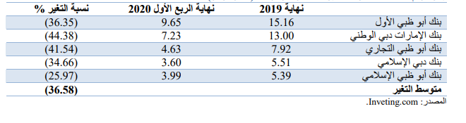 ويُوضح الجدول الآتي القيمة السوقية لأكبر 5 مصارف إماراتية (مليار دولار):