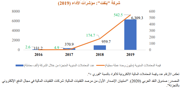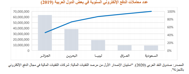 وحسب التقرير شهد نشاط شركات التقنيات المالية في عدد من الدول العربية نموا ملحوظا في السنوات الأخيرة مدعوما بالتطور الكبير المُسجل على صعيد قطاع الاتصالات وتقنية المعلومات. كما ساهمت الزيادة الكبيرة في أعداد مستخدمي الهواتف الذكية في الإسراع بتبني تطبيقات الدفع الإلكتروني في الدول العربية.