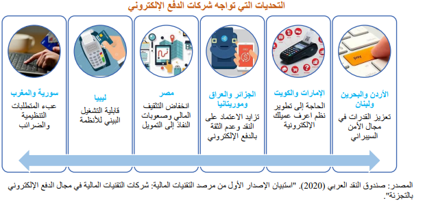 وفي رسم بياني مفصل قدّم صندوق النقد العربي جملة التحديات التي تواجه شركات الدفع الإلكتروني: